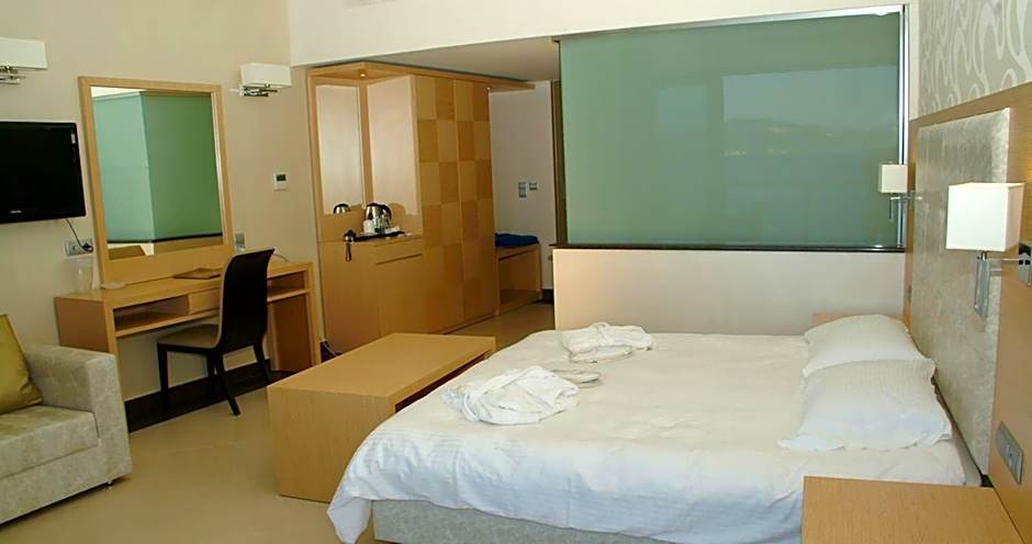 More spacious, this elegantly decorated room in beige tones enjoys Ionian Sea view from its balcony. Facilities include: